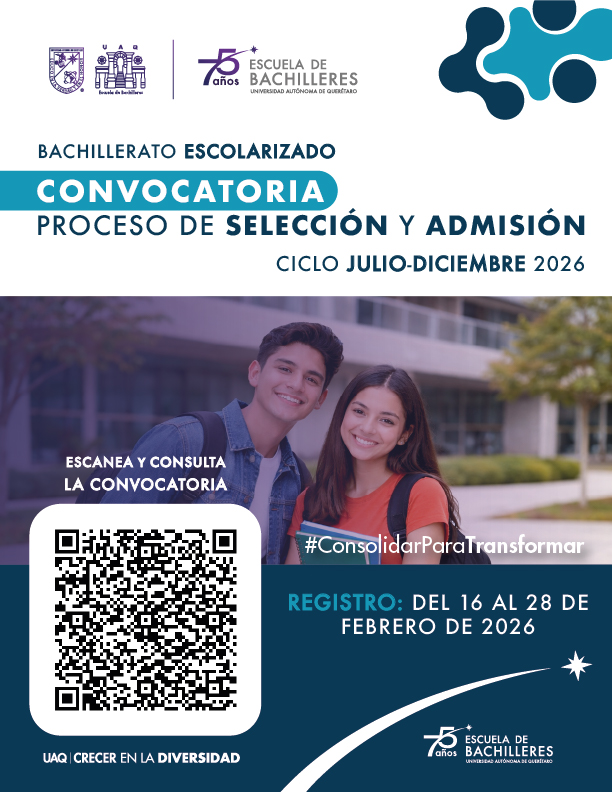 A todos los interesados en formar parte de la comunidad estudiantil de los diferentes planteles de la Escuela de Bachilleres, se les invita a participar en el proceso de selección y admisión para el ciclo julio –diciembre de 2026, bajo las siguientes: